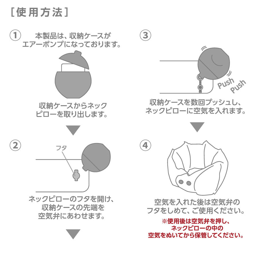 After use, the pillow can be stored in the air pump/storage case, making it compact and portable.