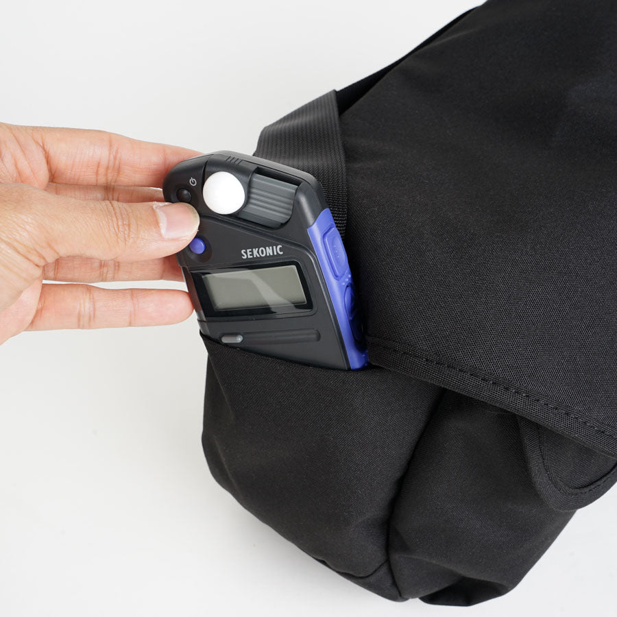 - Adjustable shoulder strap and hand-held strap.