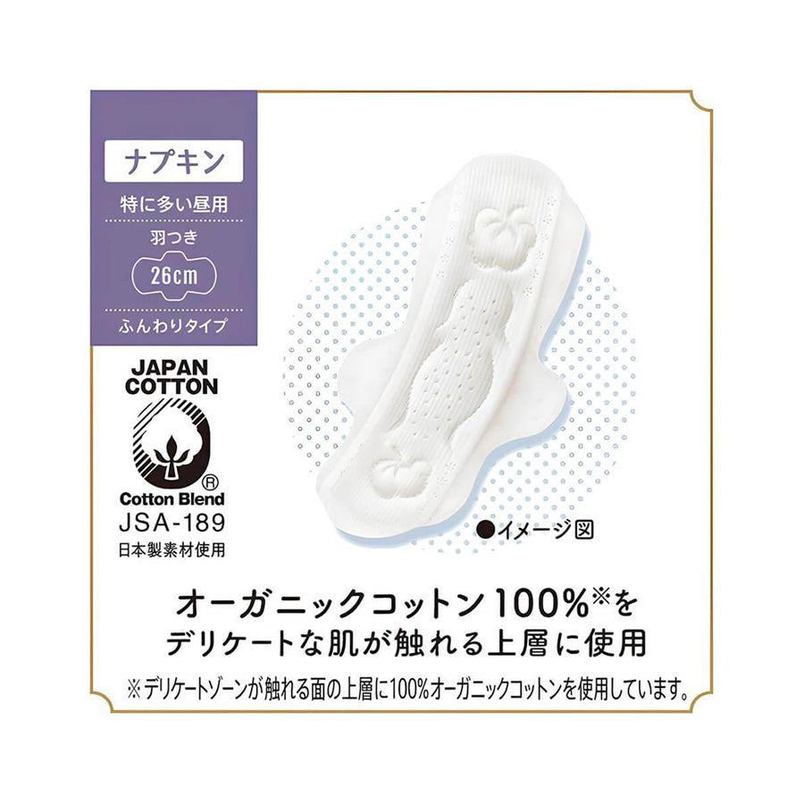 Sofy's 100% organic cotton series, made with the finest materials.Made of 100% organic cotton: less likely to leave residual menstrual blood on the skin, which can cause itching.Gentle to the skin.
