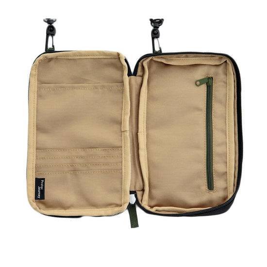 - 後拉鍊袋的PVC 透明視窗方便您在包內操作智慧型手機