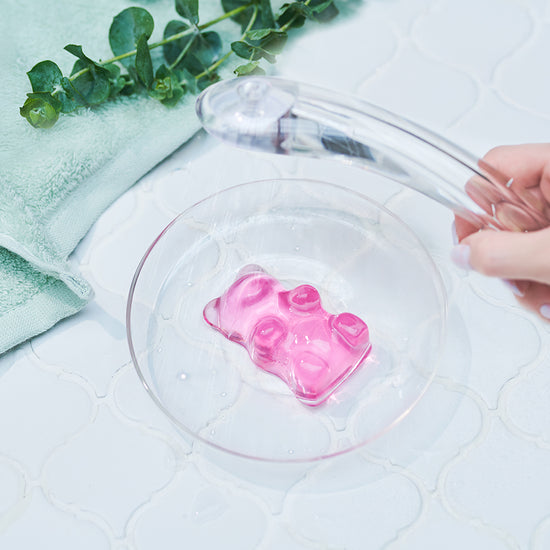當熱水流過晶瑩剔透的小熊啫喱時,它會慢慢融化,浴室裡瀰漫著芳香的香氛。即使是淋浴派或忙碌到沒有時間泡澡的人,也能享受片刻的放鬆時光。