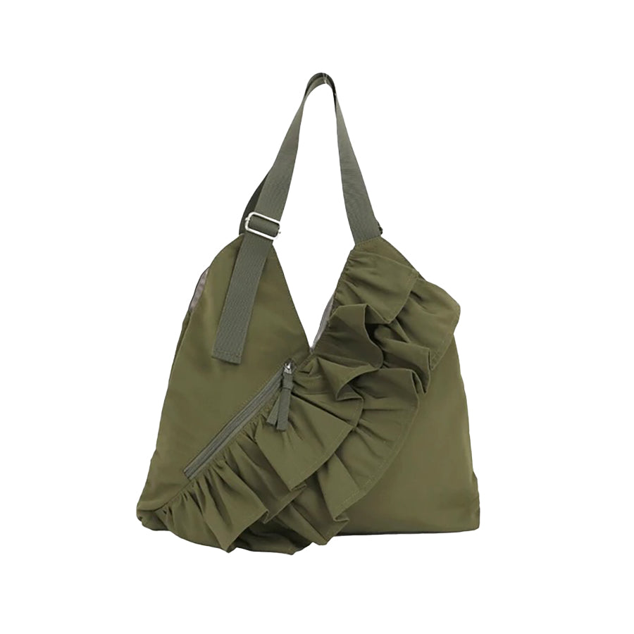 - V領手提包採用大荷葉邊設計