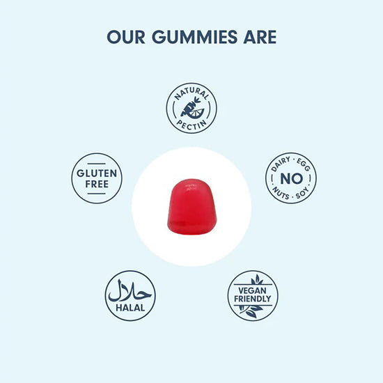 - Vitamin B12 (Cyanocobalamin): 25mcg, Soft Chew Excipients, Natural Flavour (Pomegranate), No Added Colours.